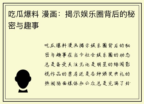 吃瓜爆料 漫画:揭示娱乐圈背后的秘密与趣事